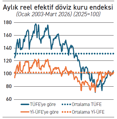 ■ Bu değerler akla şöyle bir soru da getiriyor: “Acaba TÜFE artışı olduğundan daha düşük mü hesaplanıyor ve reel kur için Yİ-ÜFE bazlı seriyi kullanmak daha mı doğru?”