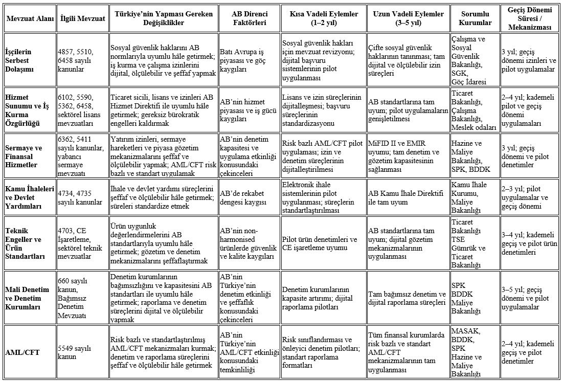 Türkiye’nin Avrupa Birliği ile olan ilişkilerinde serbest dolaşım, hizmet sunumu ve iş kurma özgürlüğü, sermaye hareketleri ve finansal hizmetler alanlarında uyum eksiklikleri, hem hukuki hem de uygulama boyutunda kritik bir eşik teşkil ediyor.