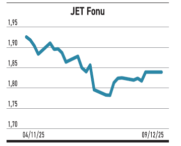 Ata Portföy’ün yönettiği Havacılık ve Savunma Teknolojileri Değişken Fonu (JET) eylülde hızlı bir küçülme yaşarken, aralığın ikinci haftasında 595,2 milyon TL büyüklüğe geriledi. Portföyün %66,12’si yabancı, %28,01’i yerli hisselerden oluşuyor. Eylüldeki artan nakit çıkışı aralığın ikinci haftasında 13,9 milyon TL’lik kayıpla sürdü. Yatırımcı sayısında kademeli azalma var. Şimdilerde sayı 20.258’e gerilese de tabanı geniş ve %32,37 doluluk oranına sahip. Fon, küresel havacılık ve savunma şirketlerine odaklanan yapısıyla risk seviyesi 6 düzeyinde. Tematik büyüme arayan yatırımcılara hitap ediyor. JET son altı ayda %11,24 getiri sağlarken teknoloji fonlarının %26,02’lik getirisinin gerisinde kaldı. Çoğunlukla bu alanın getirisi, jeopolitik beklentiler ve küresel döngülere duyarlı seyrediyor.