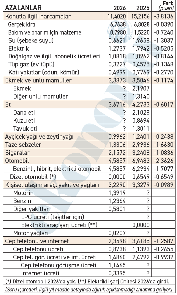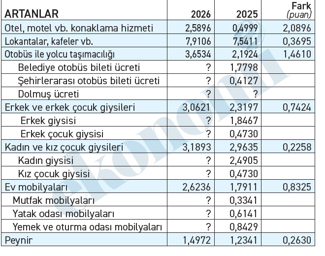 İşte o yüzden konut harcamalarının ağırlığı 4 puana yakın düşerken lokanta ve konaklama harcamalarının ağırlığı 3 puana yakın arttı ya…