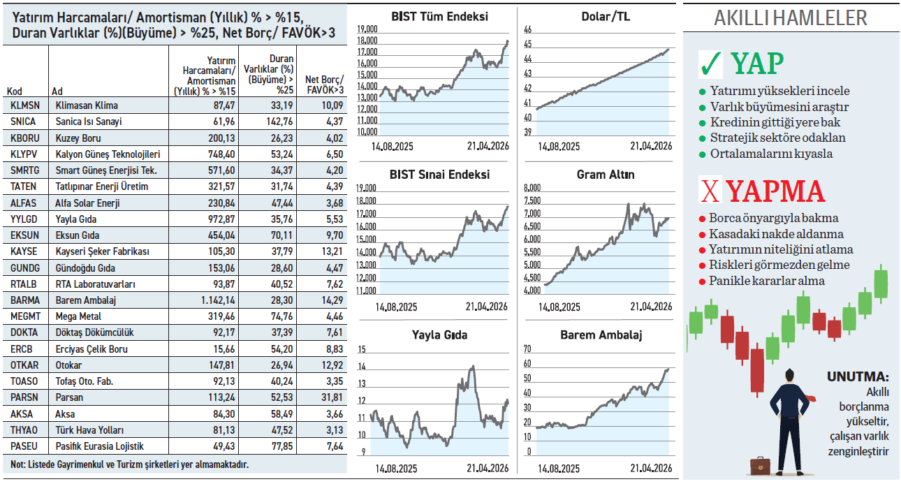 Piyasada “borçlu şirket eşittir riskli şirket” algısının bir temeli olsa da finansın dar koridorlarında asıl sorulması gereken soru şudur: Yüksek kredi kasada mı eriyor, yoksa yeni üretim bantlarına dönüşüyor mu? Listede yer alan firmalara baktığımızda, yatırım harcamaları amortismanı 11’e katlayan Barem Ambalaj veya 10 katına yaklaşan Yayla Gıda, o yüksek borçları günü kurtarmaktan ziyade, yarının kapasite artışını inşa etmek için çektiğini görüyoruz. Bu şirketler, yüksek faiz ateşine rağmen o korkutucu borcu büyüme kaldıracı olarak kullanma cesareti gösteriyor. Peki listedeki şirketlerin hepsi kurdukları şantiyeden zaferle çıkmayı başarabilecek mi?