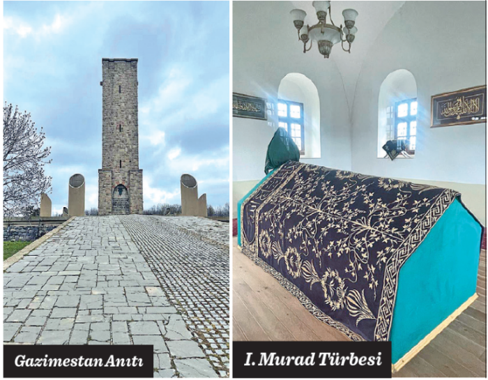Geçmemize izin verilince anıta doğru yürüdük. 28 Haziran 1389’da gerçekleşen I. Kosova Savaşı’nın düzenlendiği alana bakarken bir kez daha anlıyorum… Sanki bu topraklarda “o gün” sanki dünmüş gibi yaşanıyordu. Gazimestan anıtı savaşın 600’üncü yılında inşa edilmiş… Tarih dersi anılarımızı tazelersek, Sultan I. Murad komutasındaki Osmanlı Ordusu, Prens Lazar önderliğindeki Balkan ittifakını mağlup etmişti. Ama savaş meydanında Sultan I. Murad, Miloş adlı bir Sırp tarafından şehit edilmişti.