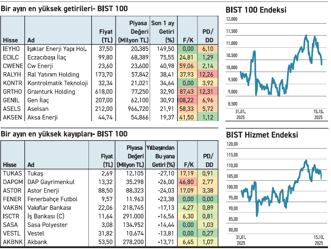 Son bir ayda endeks kapsamındaki 18 hissede %10 ve üzeri değer kayıpları yaşandı. Bunlardan dördünün düşüşü %20’nün üzerinde bulunuyor. En yüksek kayıp Tukaş ve Dap Gayrimenkul’de gözlenirken sırasıyla %27,10 ve %26 gerileme yaşandı.