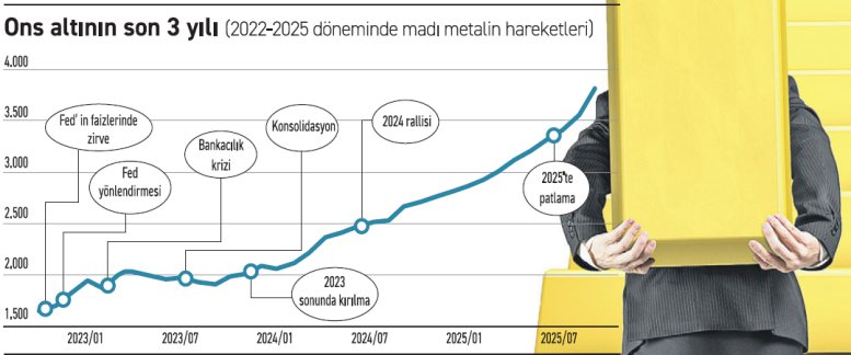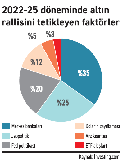 Küresel ekonomideki dalgalanmalar, jeopolitik gerginlikler ve merkez bankalarının altın iştahı bu çıkışın ana motoru oldu. Ekim 2022’de güçlü dolar, Fed’in agresif faiz artışları ve yatırımcıların ETF’lerden çıkışı altını baskılamıştı. Ancak sonraki üç yıl, piyasa koşullarının altının lehine döndü.