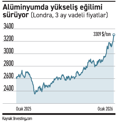 Piyasada giderek belirginleşen yapısal arz sorunlara dayanan bir fiyat artış yaşanıyor. Şanghay Vadeli İşlemler Borsası’nda alüminyum fiyatları ton başına 25.000 yuana yaklaşıp rekor seviyelere yükselirken, Londra Metal Borsası’nda (LME) fiyatlar 3.309 dolara çıkıp Nisan 2022’den bu yana en güçlü düzeyine ulaştı. Yılbaşından bu yana yükseliş yüzde 11’e ulaştı. Fiyatları yükselten ana unsurlara bakıldığında arz kaygısı öne çıkıyor.