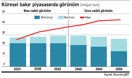 BloombergNEF, enerji dönüşümünün bakır talebini 2045’e kadar üç katına çıkarabileceğini ve yapısal açığın 2026 gibi erken bir tarihte başlayabileceğini öngörüyor. Madencilik tarafında Şili, Peru ve Endonezya’daki üretim sorunları çözülmeden kalırken, eriticiler düşük işleme ücretleriyle baskı altında.