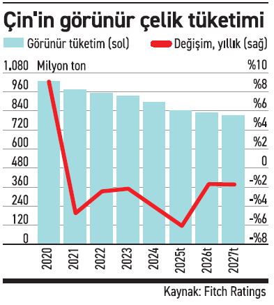 - Çin, küresel çelik piyasasını şekillendiren ana unsurlardan biri olmaya devam ediyor. 2021’den bu yana zayıflayan iç talep, üretim üzerinde baskı yaratırken, daha sıkı üretim kontrolleri ve artan ticaret engelleri Çin’in çelik üretiminde belirgin bir düşüşe işaret ediyor. Çin›in çelik üretiminin yüzde 4,5 oranında düşmesi bekleniyor; bu da ihracatı Fitch’in 2025 için öngördüğü 118 milyon tonluk tahminden 2026’da 109 milyon tona düşürecek. Bu durum, Çin kaynaklı ihracat baskısını sınırlarken, diğer bölgelerdeki talep toparlanmasının küresel dengeyi sağlaması bekleniyor. Bu çerçevede 2026 için küresel çelik görünümü nötr seviyede şekilleniyor.