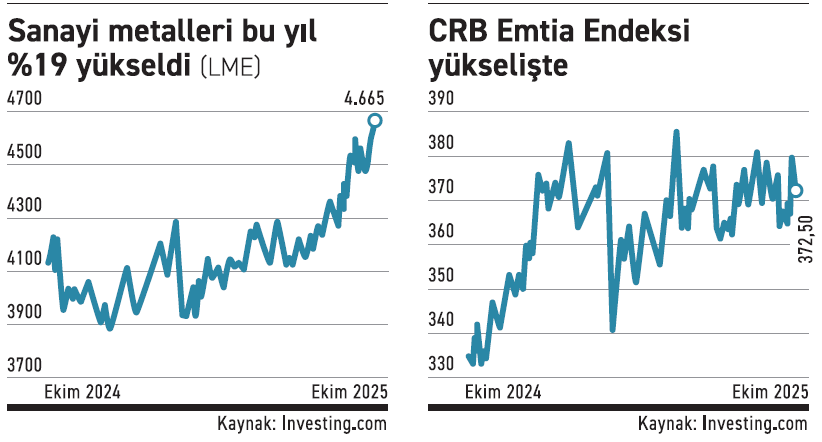 Endüstriyel metallerde son günlerde olumlu bir tablo var. LME Endeksi yılbaşından bu yana yüzde 20’ye yakın yükseldi. Bakır, 11.000 dolar rekoruna yaklaşırken, alüminyum, 2.900 dolar ile üç yılın zirvesine çıktı. Çinkonun aylık kazancı yüzde 5’e yakın. Kalay ve kurşun da yüzde 3’e yakın yükseliş kaydetti. ABD ve Hindistan’da altyapı projeleri ve yeşil enerji yatırımları, Çin’deki yavaşlamayı telafi ediyor. Dünyanın en büyük bakır madenlerinde arz kesintisi. ve İzlanda’da alüminyum üretiminde ortaya çıkan sorunlar fiyatları yukarı yönlü destekliyor.