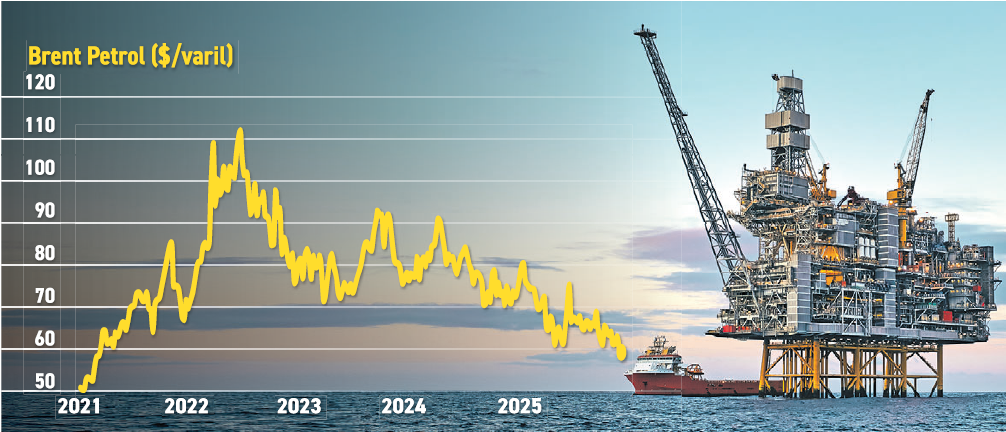 ABD Enerji Bilgi İdaresi (EIA), 2026 yılında Brent petrolünün ortalama 55,08 dolar, WTI petrolünün ise 51,42 dolar seviyesinde olacağını öngörüyor. ABD ham petrol üretiminin 2025’te ortalama 13,61 milyon varil/gün, 2026’da ise 13,53milyon varil/ gün olması bekleniyor. Küresel üretimin 2025’te 106,18 milyon varil/gün, 2026’da 107,43 milyon varil/gün; tüketimin ise sırasıyla 103,94 ve 105,17 milyon varil/gün seviyelerine ulaşacağı tahmin ediliyor.
