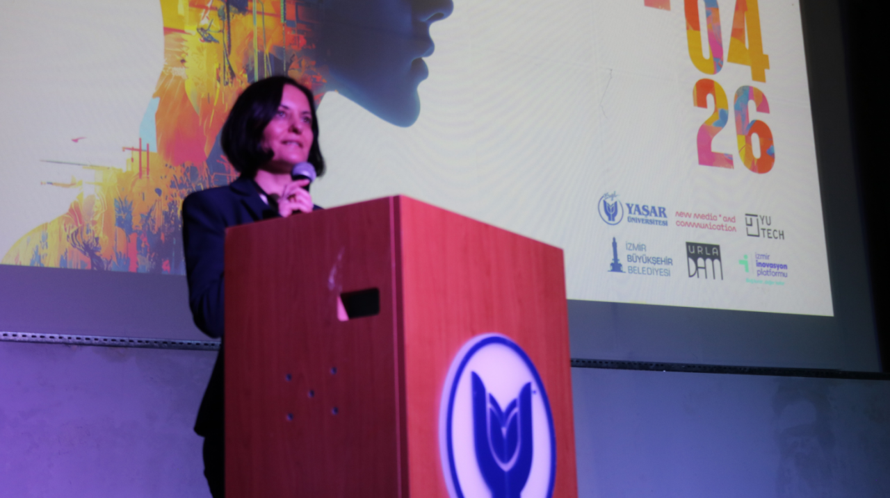 Bugün burada sadece bir festivalin açılışını yapmadıklarını kitle iletişimi, veriyi veriyle işleme, algoritmayla hikaye inşa ettiklerini dile getiren Yaşar Üniversitesi Yeni Medya İletişim Bölüm Başkanı Sayın Doçent Doktor Özlem Ozan, “Bu nedenle bugün burada aslında bir festivalin açılışından ziyade kamu, akademi, sektör temsilcileriyle beraber geleceğe dair ortak bir tahayyül kurmaya çalışıyoruz. Bu geleceğin nasıl olacağını birlikte inşa edeceğiz. Yapay zekanın yalnızca bir araç değil bir anlatı ortağına dönüştüğü bu çağda yeni hikaye biçimlerini keşfetmek, hibrit anlatım üretim süreçlerini deneyimlemek birlikte insan makine yaratıcılığını, sınırlarını birlikte tartışmak istiyoruz. Bu festivalden bir beklentimiz daha var. Yani iyi işleri görmekten öte yeni soruları ortaya çıkartmak, etik sınırları yeniden düşünmek, telifi, yaratıcılığı, özgünlüğü yeniden ele almak ve onun da ötesinde öğrencilerimizin kendi yaratıcı cesaretlerini keşfetmesi. Bugün burada en büyük beklentimiz bu aslında” diye konuştu.