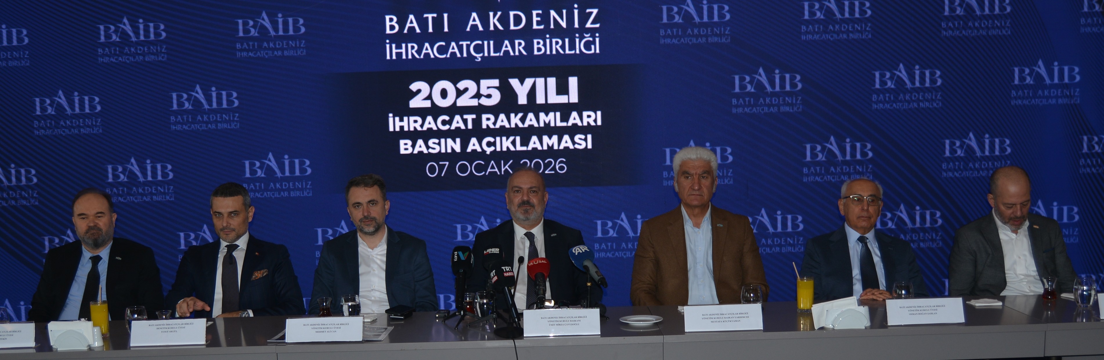 Batı Akdeniz İhracatçı Birliği (BAİB) Başkanı Ümit Mirza Çavuşoğlu ve BAİB yönetim kurulu üyeleri ile birlikte 2025 yılı ihracat rakamlarını değerlendirmek ve 2026 hedeflerini açıklamak üzere Akra Barut Oteli’nde basın toplantısı düzenledi.
