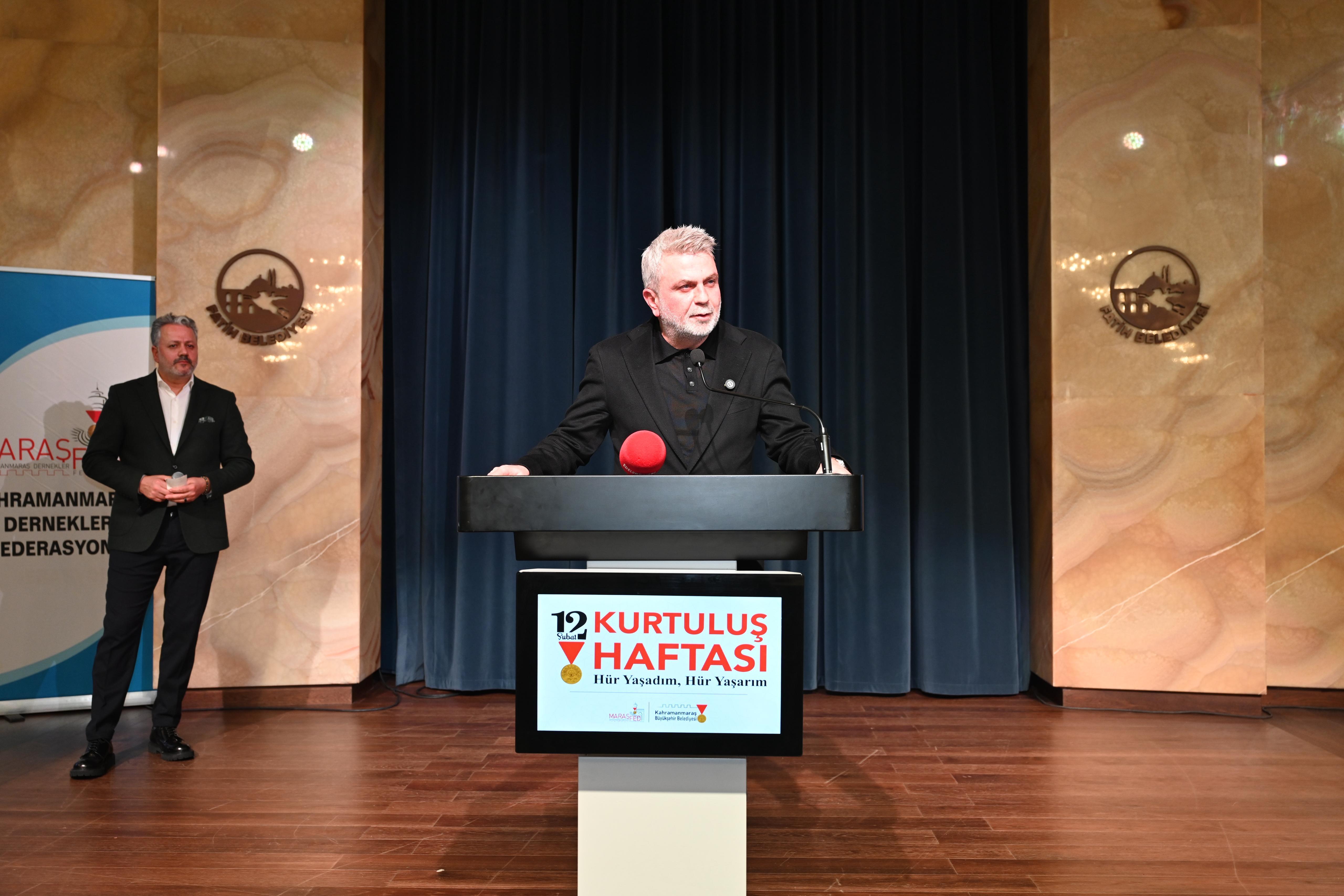 Kahramanmaraş Büyükşehir Belediyesi ve İstanbul Dernekler Federasyonu (MARAŞFED) iş birliğiyle Fatih’te Neslişah Sultan Kültür Merkezi’nde düzenlenen etkinlik, büyük bir coşku ve gurura sahne oldu. “Hür Yaşadım, Hür Yaşarım” teması ile düzenlenen programa; AK Parti Genel Başkan Yardımcısı Mustafa Demir, 66. Hükümet Tarım ve Orman Bakanı Prof. Dr. Vahit Kirişci, TBMM İdare Amiri ve AK Parti İstanbul Milletvekili Hasan Turan, AK Parti Kahramanmaraş Milletvekili Mevlüt Kurt, Büyükşehir Belediye Başkanı Fırat Görgel, Afşin Belediye Başkanı Koray Kıraç, Türkoğlu Belediye Başkanı Mehmet Karaca, MARAŞFED Başkanı Cuma Köse, dernek başkanları ve İstanbul’da yaşayan Kahramanmaraşlılar katıldı. Program, mehteran takımı eşliğinde bayrak yürüyüşü ile başladı. Saygı duruşu ve İstiklal Marşı’nın okunması ile devam eden program, Kur’an-ı Kerim tilaveti, dualarla manevi arşa çıktı. Kahramanmaraş’ın düşman işgalinden kurtuluşunda adlarını tarih sayfalarına altın harflerle yazdıran Millî Mücadele kahramanları olan Sütçü İmam, Abdal Halil Ağa, Arslanbey ve diğer kahramanlardan kısa kesitlerin sunulması ile katılımcılar duygusal anlar yaşadı. Program boyunca Kahramanmaraş’ın kurtuluş mücadelesi bir kez daha hatırlanarak, şehrin kahramanlık destanı vurgulandı.
