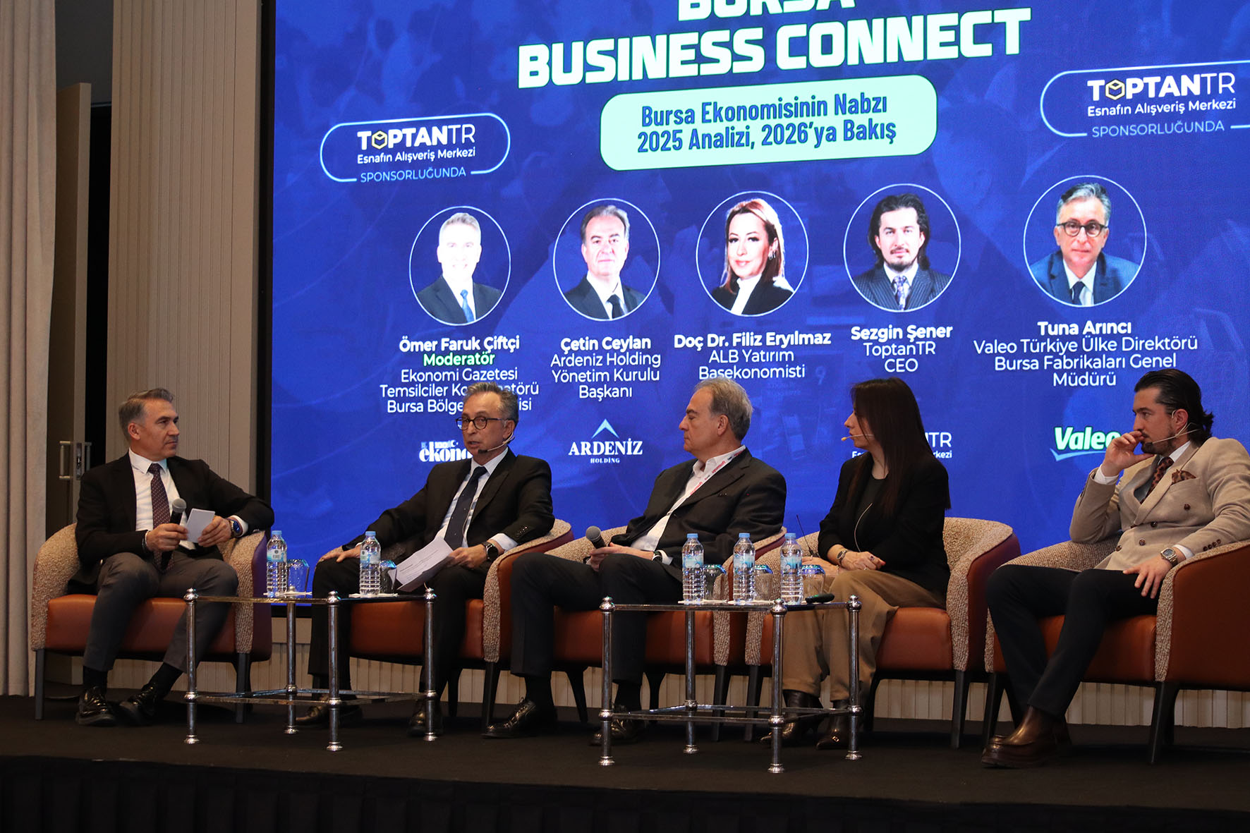 Bursa iş dünyası Comio Dijital Pazarlama ve Oniki tarafından düzenlenen, yapay zekâ destekli B2B görüşmelerinin gerçekleştirildiği Bursa Business Connect’te bir araya geldi. Farklı sektörlerden iş insanlarının buluştuğu etkinlikte MARSİFED Başkanı Osman Akın, BUİKAD Başkanı Şeyda Şençayır da katıldı. Comio Kurucu Ortağı Mustafa Sönmezay ile Oniki CEO’su Ziya Kızıltan’ın açılış konuşmalarının ardından MARSİFED Yönetim Kurulu Başkanı Osman Akın sanayi devriminden günümüze teknolojik gelişmeleri de içeren, iş insanların yol haritası çizen bir sunum yaptı. Etkinlik kapsamında sınırlı sayıda iş insanıyla yapılması planlanan B2B görüşmelerinin öncesinde EKONOMİ Gazetesi Temsilciler Koordinatörü Ömer Faruk Çiftçi’nin moderatörlüğünde ‘Bursa ekonomisinin nabzı, 2025 analizi ve 2026’ya bakış’ konulu bir oturum düzenledi. Oturuma Ardeniz Holding Yönetim Kurulu Başkanı Çetin Ceylan, ALB Yatırım Başekonomisti Doç. Dr. Filiz Eryılmaz, Valeo Türkiye Ülke Direktörü, Bursa Fabrikaları Genel Müdürü, Uludağ Otomotiv Endüstrisi İhracatçıları Birliği (OİB) Yönetim Kurulu Üyesi Tuna Arıncı ile ToptanTR CEO’su Sezgin Şener katıldı.
