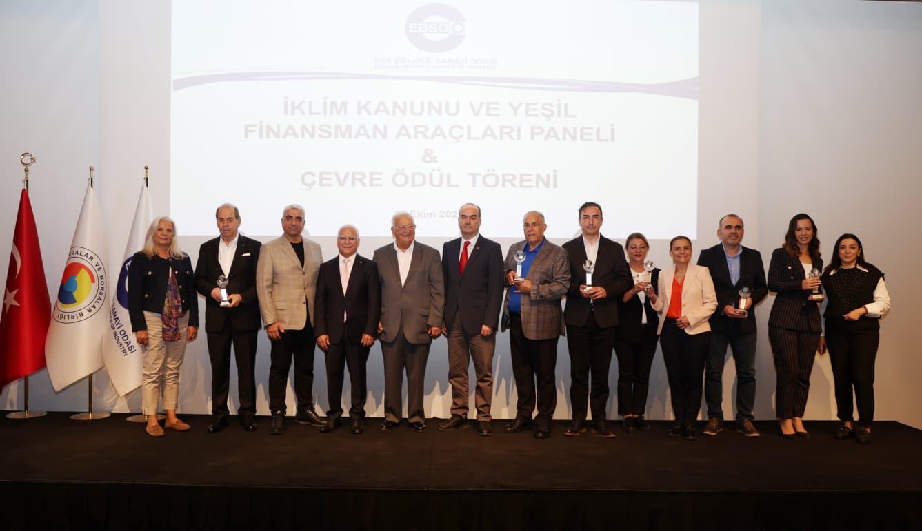 Ege Bölgesi Sanayi Odası (EBSO) ile Çevre, Şehircilik ve İklim Değişikliği Bakanlığı iş birliğinde düzenlenen “İklim Kanunu ve Yeşil Finansman Araçları Paneli” ile sanayi sektörünün yeşil dönüşüm sürecindeki rolü masaya yatırıldı. Panelin ardından 20. kez “EBSO Çevre Ödülleri” sahiplerini buldu. Sanayide sürdürülebilir üretim uygulamalarını teşvik eden ödül töreninde, çevreye duyarlı projeleriyle öne çıkan firmalar ödüllerini aldı.