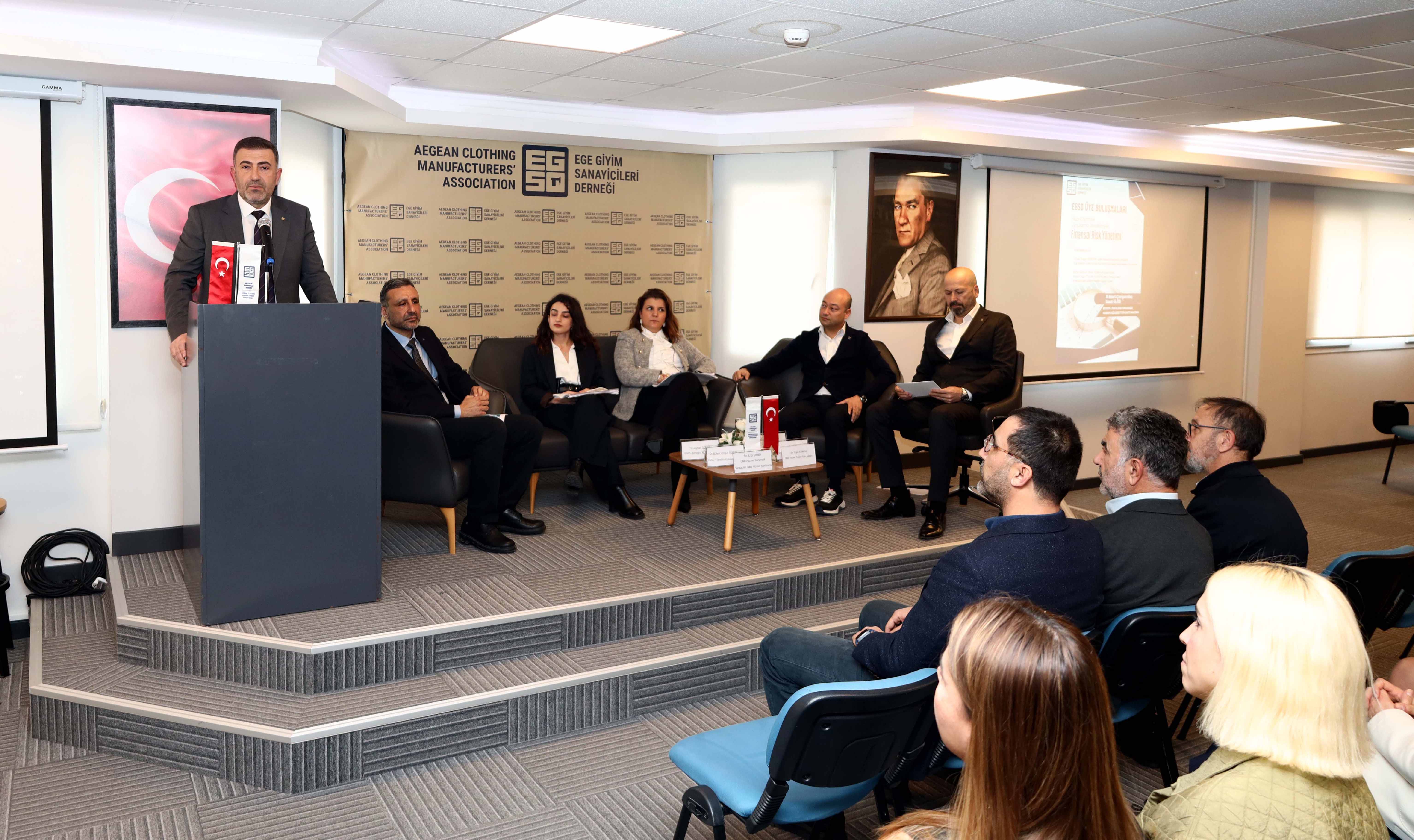 Ege Giyim Sanayicileri Derneği (EGSD) tarafından düzenlenen Üye Buluşmaları etkinliği Buca Ege Giyim Organize Sanayi Bölgesi (BEGOS) ev sahipliğinde gerçekleştirilirken toplantıda, hazır giyim sektöründe kur riskleri, kredi enstrümanları ve sürdürülebilirlik bağlantılı finansal ürünler uygulama örnekleriyle ele alındı. Toplantının açılış konuşmasını gerçekleştiren EGSD Yönetim Kurulu Başkanı Yasin Akçakaya, günümüz rekabet koşullarında şirketleri ayakta tutan unsurun yalnızca üretim gücü değil aynı zamanda finansal riskleri doğru yönetebilme kabiliyeti olduğunu vurguladı.