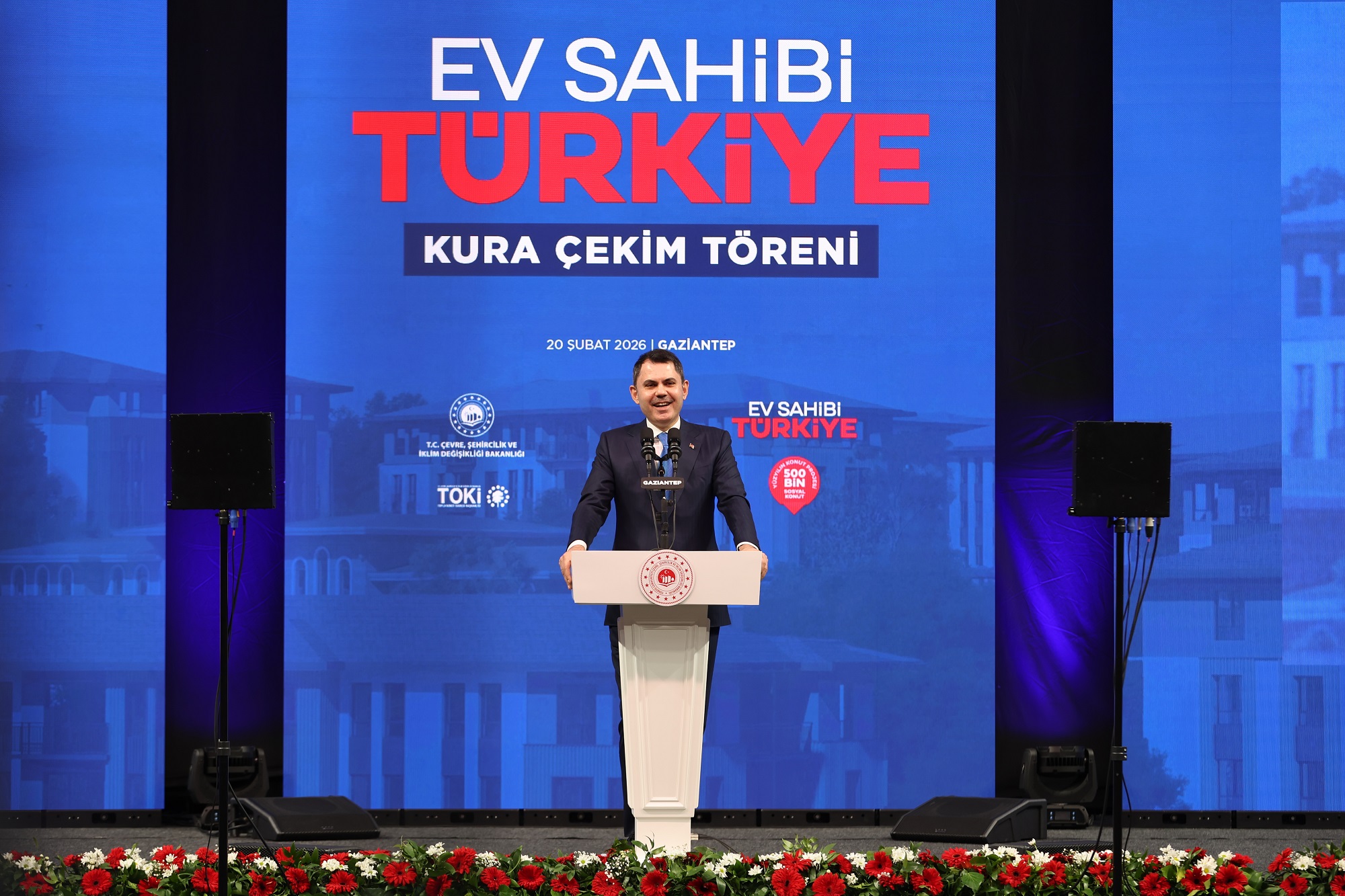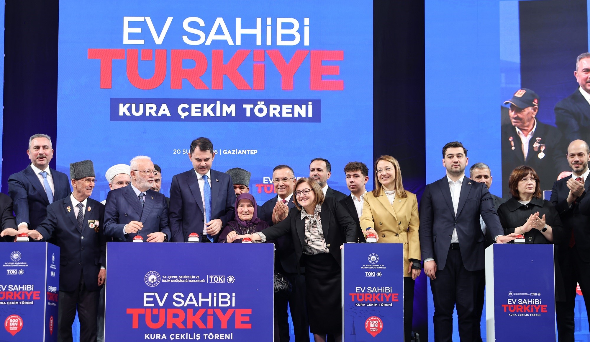 Cumhuriyet tarihinin en büyük sosyal konut hamlesi olarak nitelendirilen 500 bin konutluk projenin kura takvimi planlandığı şekilde devam ediyor. Bu kapsamda Kamil Ocak Spor Salonu’nda düzenlenen kura törenindeki ilk talihliler, Çevre, Şehircilik ve İklim Değişikliği Bakanı Murat Kurum’un butona basmasıyla belirlendi.