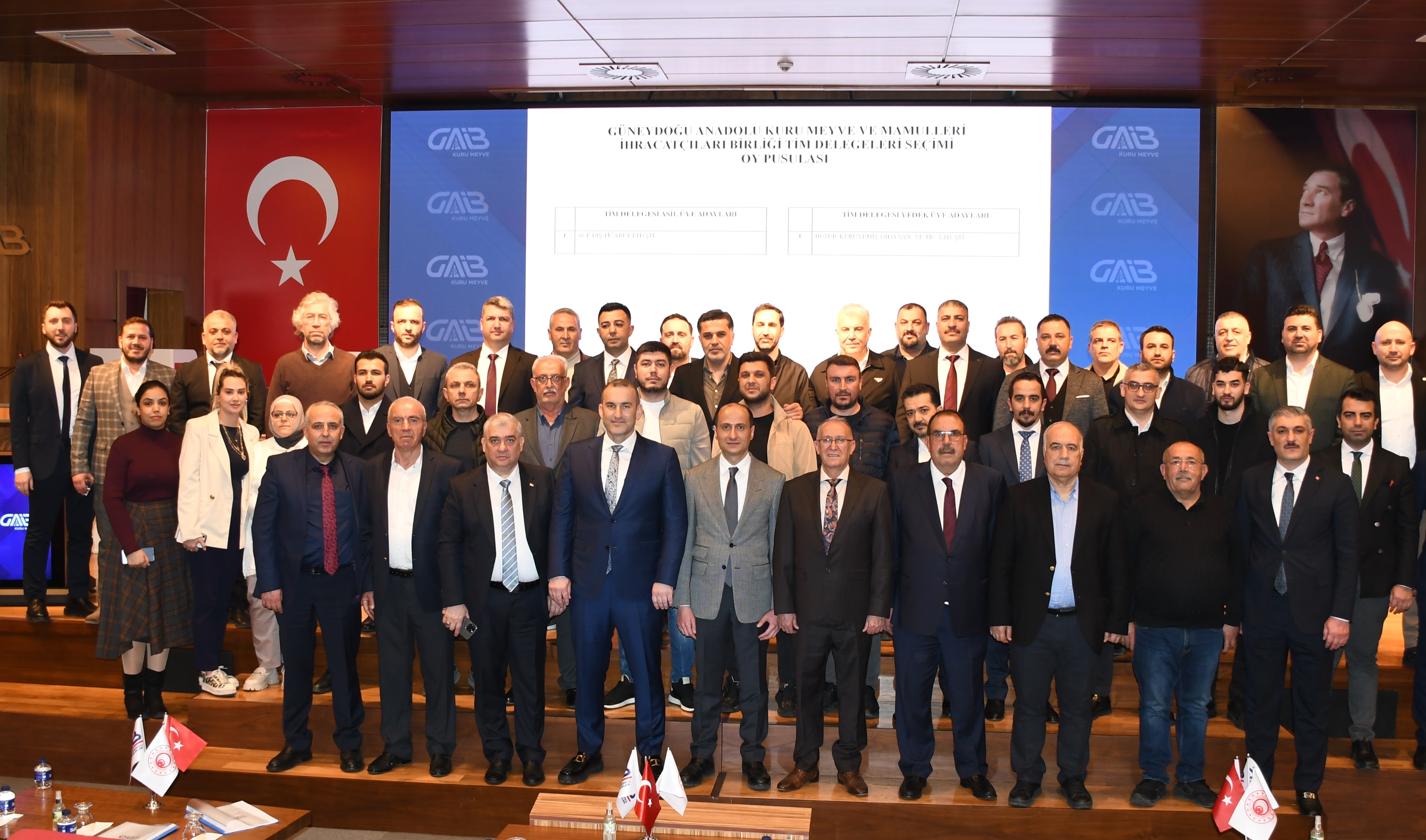 Güneydoğu Anadolu Kuru Meyve ve Mamulleri İhracatçıları Birliğinin seçimli olağan genel kurul toplantısı yapıldı. Güneydoğu Anadolu İhracatçı Birlikleri Toplantı Salonu’nda gerçekleştirilen genel kurula TİM Başkan Vekili ve GAİB Koordinatör Başkanı Ahmet Fikret Kileci, Güneydoğu Anadolu Hububat Bakliyat Yağlı Tohumlar ve Mamulleri İhracatçıları Birliği Başkanı Celal Kadooğlu ve yönetim kurulu üyeleri, Gaziantep Ticaret Borsası Başkanı Mehmet Akıncı, Güneydoğu Anadolu Halı İhracatçıları Birliği Başkanı Zeynal Abidin Kaplan, davetliler ve Birlik üyesi ihracatçılar katıldı.