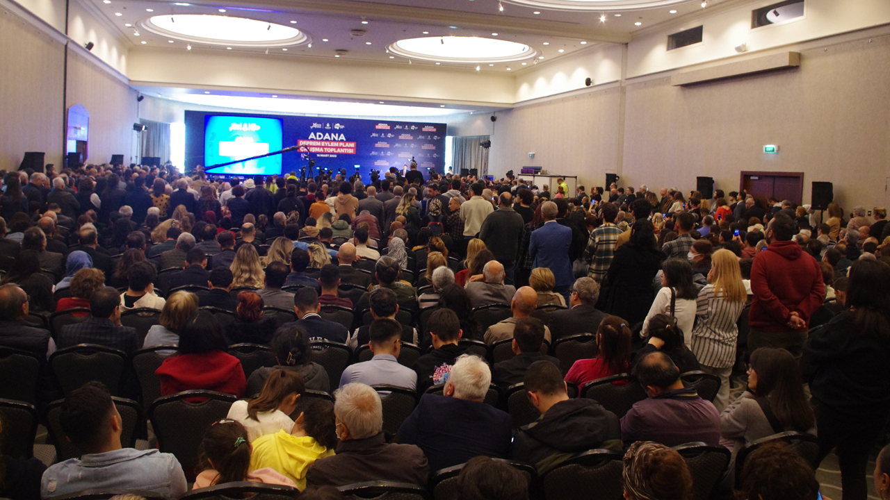 Adana Büyükşehir Belediye Başkanı Zeydan Karalar’ın ev sahipliğinde yapılan toplantıya Adanalılar yoğun ilgi gösterdi. Etkinliği izlemeye gelen binlerce kişinin sadece bir bölümü toplantının yapıldığı salona alınabildi, çok sayıda vatandaş ise dışarıda kaldı.