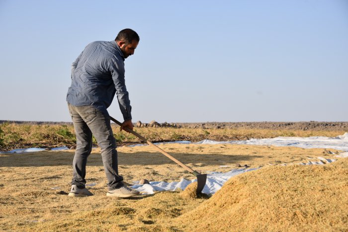 Mayıs ayında Şanlıurfa'nın Siverek ilçesinde çoğunlukla taşlık arazilere ekilen çeltik, eylül ayında düz arazilerde biçerdöverle biçilirken, eğimli arazilerde ise işçiler tarafından orakla toplanıyor.