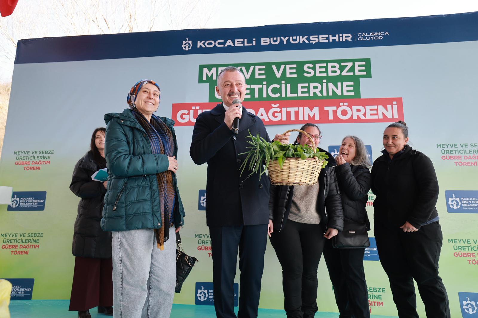 Kocaeli Büyükşehir Belediyesi, kırsal kalkınmayı güçlendirmek, üretim maliyetlerini azaltmak ve yerli üreticiyi desteklemek amacıyla kent genelinde meyve, sebze ve fındık üretimi yapan 5 bin çiftçiye toplam 1.850 ton (37 bin paket) zirai gübre desteği sağlayacak. 48 milyon TL değerindeki proje ile 74 bin dekar meyve ve sebze bahçesi, ekim için desteklenmiş olacak. Gübreler, Kartepe Eşme’de Kocaeli Büyükşehir Belediye Başkanı Doç. Dr. Tahir Büyükakın’ın katıldığı törenle üreticilere teslim edilmeye başlandı.