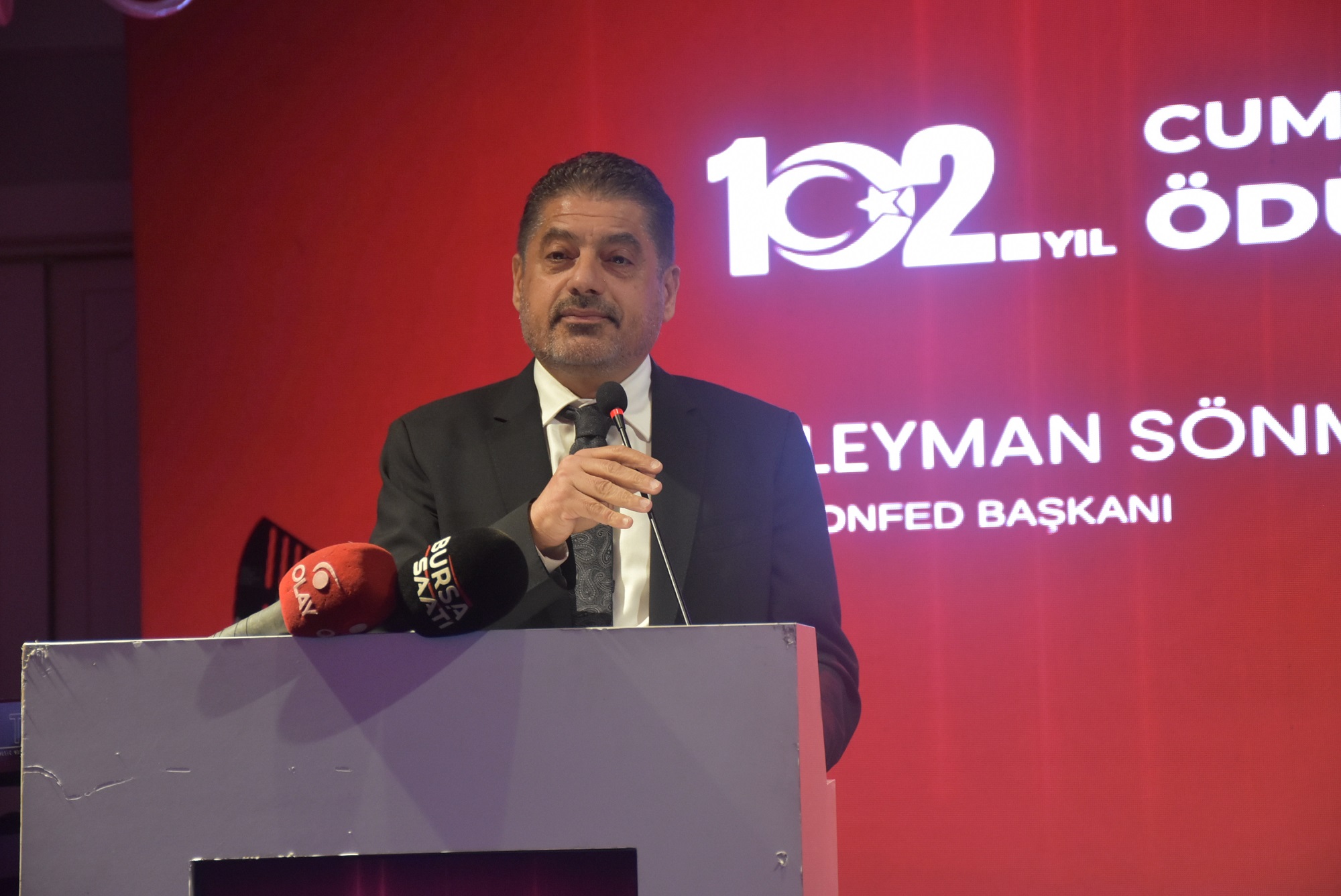 TÜRKONFED Yönetim Kurulu Başkanı Süleyman Sönmez ise Türkiye’nin kalkınma yolculuğunda sivil toplumun ve iş dünyasının kritik bir role sahip olduğunu vurguladı. Başkan Sönmez, “Mustafa Kemal Atatürk’ün, ‘Ekonomik kalkınma; hür, müstakil, daima daha kuvvetli, daima daha refahlı Türkiye idealinin belkemiğidir’ sözünden ilham alıyoruz. Biliyoruz ki kalkınmanın temeli yerelden geçer; Cumhuriyet’in gücü de bu toprakların her köşesinde üreten insanlardadır. Anadolu’nun dört bir yanında, üyelerimizle birlikte üretimin, istihdamın ve refahın ülkemizin bütününe yayılması için çalışıyoruz. Cumhuriyetimizin irfanıyla büyüyen bir sivil toplum ailesi olarak, ekonomik gücünü demokrasiyle destekleyen, eşitlik ve liyakat esasına dayalı kurumlarıyla güveni pekiştiren bir Türkiye için çabamızı sürdüreceğiz. Mustafa Kemal’in açtığı yolda, bağımsızlık, özgürlük ve ilerleme idealini her şeyin üstünde tutarak Cumhuriyetimizin değerlerini geleceğe taşıyacağız.” dedi.