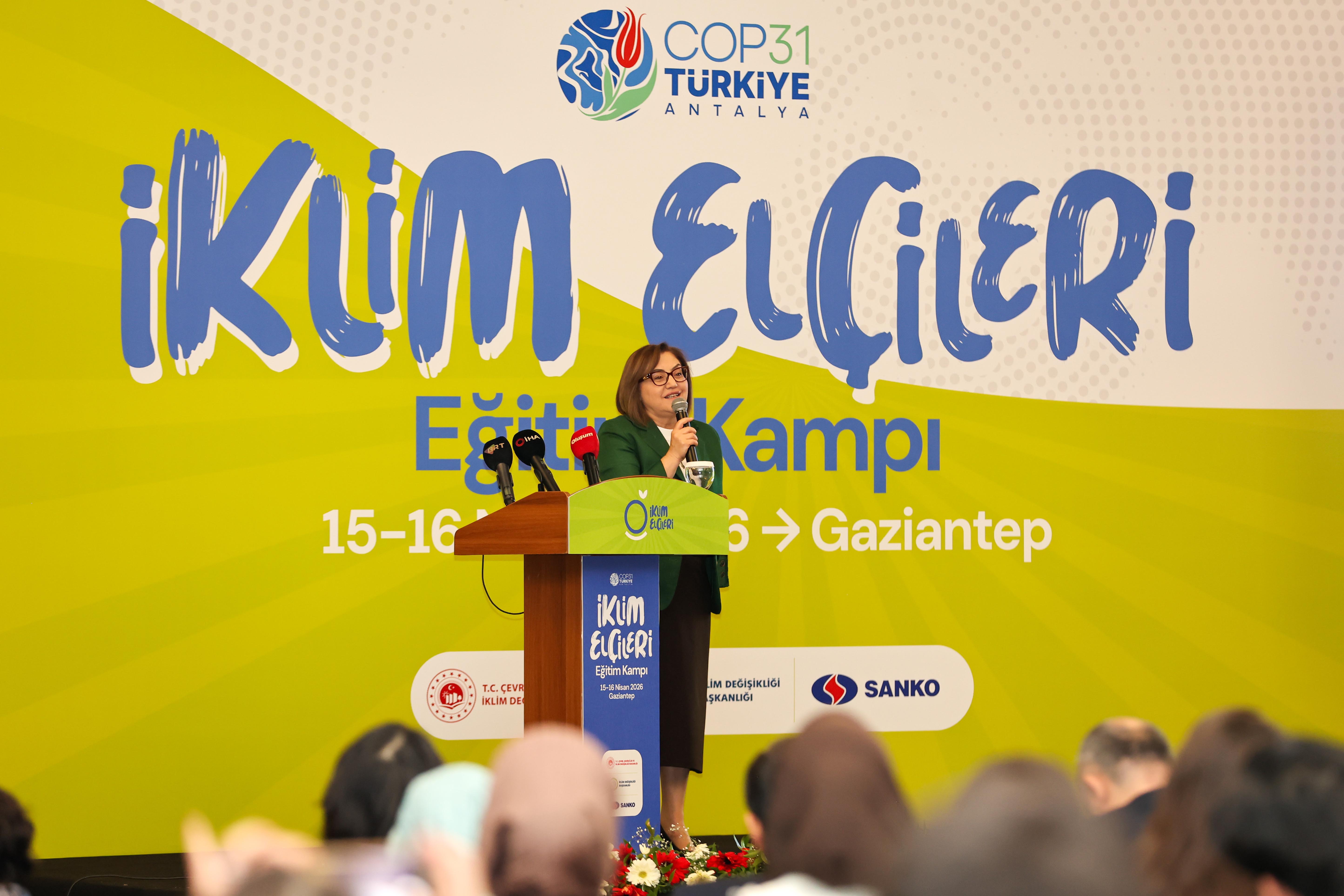 Gaziantep Büyükşehir Belediye Başkanı Fatma Şahin ise yaptığı konuşmada, doğaya dost bir gelecek için en büyük umudu iklim elçilerinde gördüğünü ifade ederek, “Sizler geleceğin dünyasında söz sahibi olacak gençlersiniz. Bu mikrofonu yarın siz devralacaksınız. Öldürenlerin değil, yaşatanların, iyilerin ve doğaya sahip çıkanların tarafında olacağınıza inandığım için bugün burada olmanız çok kıymetlidir” diye konuştu. Gaziantep’in çevre ve iklim başlığında yürüttüğü çalışmaları anlatan Şahin, kentin ulusal ve uluslararası ölçekte birçok örnek uygulamayı hayata geçirdiğini dile getirerek, “Gaziantep, katılımcı yönetim anlayışıyla, kimseyi geride bırakmayan yaklaşımıyla OECD tarafından dünyanın örnek şehirlerinden biri olarak gösterildi. Yine yürüttüğümüz çalışmalar sayesinde Avrupa ve Birleşmiş Milletler nezdinde önemli takdirler ve ödüller aldık” ifadelerini kullandı. COP31 sürecine de değinen Şahin, Türkiye’nin ev sahipliği yapacağı bu sürecin gençler açısından tarihi bir fırsat olduğunu dile getirdi.