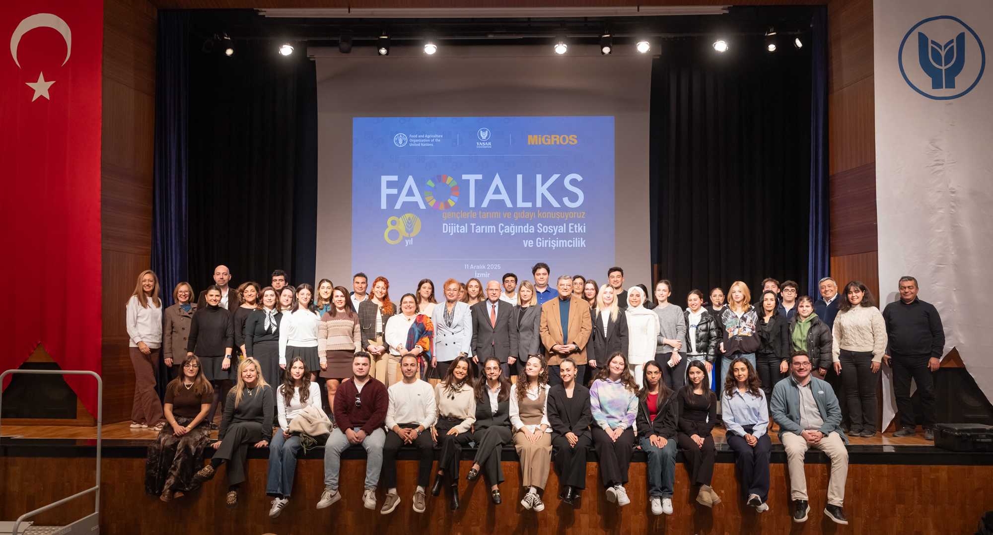 Yaşar Üniversitesi, Birleşmiş Milletler Gıda ve Tarım Örgütü (FAO) Türkiye ve Migros tarafından düzenlenen etkinlikte, giderek yaşlanan tarım nüfusunun gençleştirilmesi gerektiğine dikkat çekildi. FAO Talks- Gençlerle Tarımı ve Gıdayı Konuşuyoruz başlıklı panel Selçuk Yaşar Kampüsü’nde gerçekleştirildi.