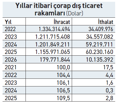 Türkiye’nin ihracat performansında ürün çeşitliliği önemli rol oynadı. 2025 verilerine göre pamuklu diğer çoraplar 700,8 milyon dolarlık ihracatla sektörün lokomotifi olmayı sürdürdü. Bu ürün grubu tek başına toplam ihracatın yüzde 60,6’sını oluşturdu. Ancak son yıllarda asıl dikkat çeken gelişme sentetik liflerden uzun çoraplarda yaşandı. Söz konusu ürün grubunun ihracatı 2025’te 197,6 milyon dolara yükselirken, son beş yılda yüzde 69,9 artış kaydetti. Spor, performans ve fonksiyonel kullanım alanlarına hitap eden bu segmentteki büyüme, sektörün daha katma değerli alanlara yöneldiğine işaret ediyor. Yünlü çoraplarda da artış dikkat çekti. 2025 yılında 21,3 milyon dolarlık ihracat yapan sektör, bu kategoride son beş yılda yüzde 39,9 büyüme sağladı. Buna karşılık bazı külotlu çorap ve tayt gruplarında daralma görüldü. İlk 10 ürün grubu toplam ihracatın yüzde 97,5’ini oluşturarak üretimin belirli alanlarda yoğunlaştığını gösterdi.
