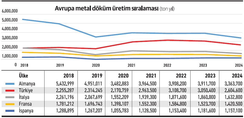 Yeni yatırımlar konusunda ise sektörde büyük ölçekli hamlelerden çok kapasite artırımı ve teknoloji odaklı dönüşümün öne çıktığını belirten Efe, “Yeni ve büyük yatırımlar çok sınırlı ama son iki yılda özellikle Anadolu’da ve Konya’da bazı sıfır yatırımlar var. Bunun yanında kapasite kullanımını artıran yatırımlar, robotlaşma ve otomasyon öne çıkıyor. Dökümde tamamen yeni tesislerden çok mevcut tesislerin dönüşümü yaşanıyor” dedi.