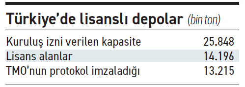 Hâlen ürünleri ayın belirli dönemlerinde ve kendi belirlediği miktarda tahsisli satan Ofis, bugünden itibaren satışları Türkiye Ürün İhtisas Borsası (TÜRİB) üzerinden yapmaya başlayacak. Türkiye’de lisanslı depoların kapasitesi 14 milyon tonun üzerinde ve depoların yüzde 62’si dolu durumda. Depodaki ürünlerin yüzde 84’ü TMO’ya ait. Yapılan hesaplamalara göre depolardaki 6.3 milyon ton buğdayın yaklaşık 5.3 milyon tonu özel sektöre ait.