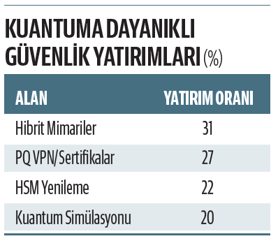 Accenture’ın 2025 Siber Güvenlik Strateji raporu, şirketlerin yüzde 38’inin PQC yol haritası çıkardığını, yüzde 12’sinin ise pilot projelere geçtiğini gösteriyor. En çok yatırım yapılan PQC alanları: (%31) Hibrit güvenlik mimarileri (Klasik + PQC), (%27) kuantuma dayanıklı VPN ve sertifika sistemleri, (%22) donanım güvenlik modüllerinin (HSM) yenilenmesi, (%20) kuantum saldırı simülasyon platformları bugün PQC bir “tercih” gibi görünse de uzmanlar, bunun yakın gelecekte zorunlu bir dönüşüme evrileceği konusunda hemfikir. Sadece teknolojik değil, stratejik bir hazırlık gerekiyor. Kuantum bilgisayarlar henüz günlük yaşamımıza girmese de tehditleri çoktan gelmiş durumda. Erken hazırlık yapan kurumlar, veri güvenliği, itibar ve regülasyon uyumluluğu açısından büyük avantaj elde edecek.