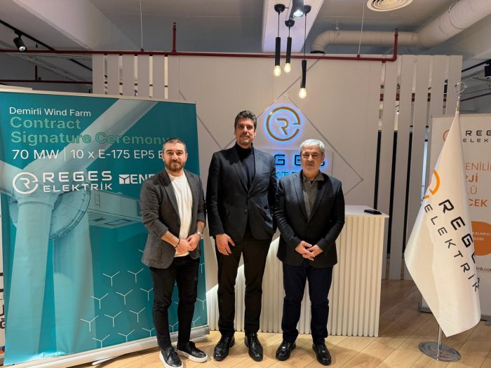 Reges Elektrik, Demirli RES projesindeki türbinler için Enercon’la anlaşma imzaladı. Enercon, Reges Elektrik’e her biri 7 MW gücünde 10 adet türbin tedarik edecek. Reges Elektrik böylece ilk RES projesinde 70 MW’lık kurulu güce ulaşacak.