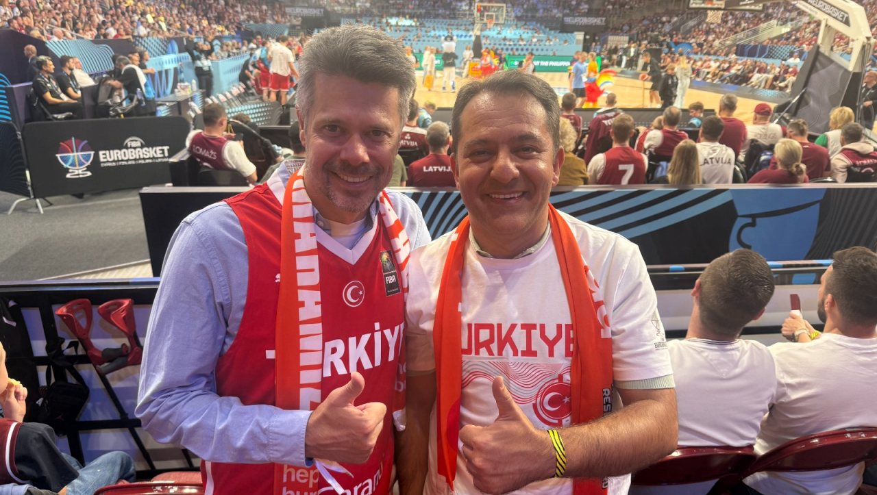 Avrupa Erkekler Basketbol Şampiyonası 2025 kapsamında ev sahibi Letonya’nın başkenti Riga’da düzenlenen basın buluşmasının ardından Cem Tanır (sağda) ve David Ferguson, Türkiye-Letonya maçını birlikte izledi. Millilerimizin 93-73 kazandığı karşılaşmada atılan her sayı aynı zamanda “mama” anlamına geldi. Hepsiburada’nın “Potadan Patiye” projesi kapsamında, Millilerimizin turnuva boyunca attığı her sayı için Kurtaran Ev Derneği’ne 5 kilogram mama bağışlanıyor. Bu da Letonya, Çekya ve Portekiz maçlarında atılan toplam 280 sayının, 1.400 kilogram mamaya dönüşmesi demek. Proje, turnuva boyunca devam edecek.