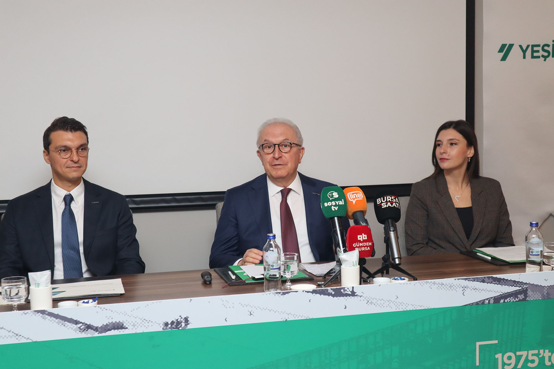 Yeşilova Holding’in 50’nci kuruluş yıldönümünde basınla bir araya gelen Yeşilova Holding Yönetim Kurulu Başkanı Ali İhsan Yeşilova’ya oğlu Yalçın Yeşilova ve kızı Yasemin Yeşilova da eşlik etti.